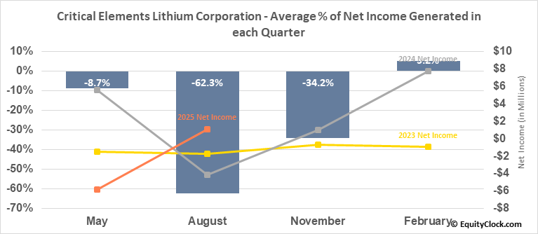 Critical Elements Lithium Corporation (TSXV:CRE.V) Seasonal Chart