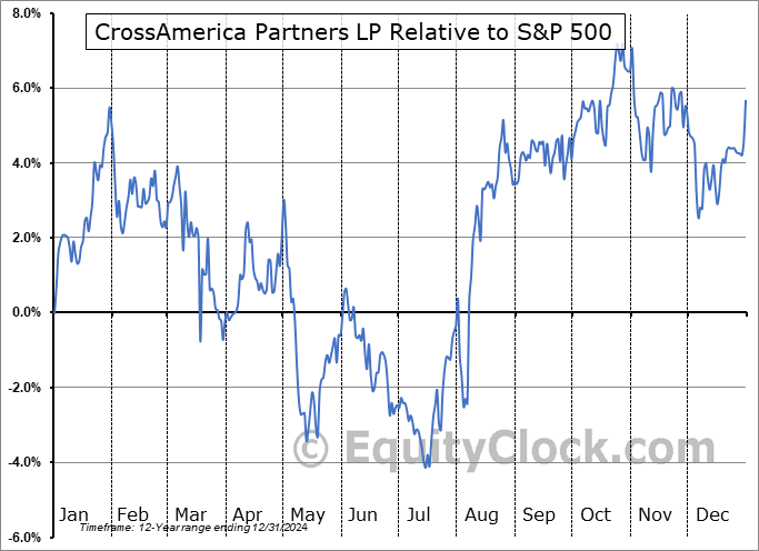Analysis of the CrossAmerica Partners LP (NYSE:CAPL) seasonal charts above shows that a Buy Date of June 26 and a Sell Date of October 6 has resulted in a geometric average return of 7.22% above the benchmark rate of the S&P 500 Total Return Index over the past 12 years. This seasonal timeframe has shown positive results compared to the benchmark in 12 of those periods. This is an excellent rate of success and the return strongly outperforms the relative buy-and-hold performance of the stock over the past 12 years by an average of 10.02% per year.