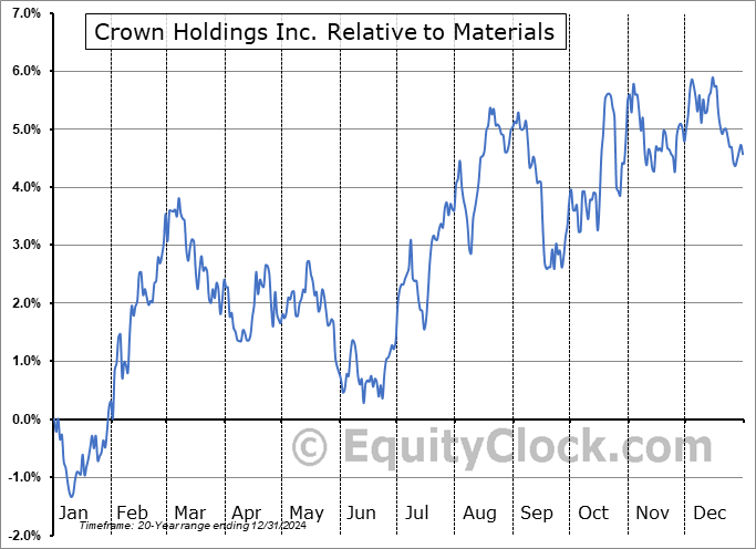 Analysis of the Crown Holdings Inc. (NYSE:CCK) seasonal charts above shows that a Buy Date of January 14 and a Sell Date of April 12 has resulted in a geometric average return of 2.14% above the benchmark rate of the S&P 500 Total Return Index over the past 20 years. This seasonal timeframe has shown positive results compared to the benchmark in 15 of those periods. This is a good rate of success and the return strongly outperforms the relative buy-and-hold performance of the stock over the past 20 years by an average of 2.58% per year.