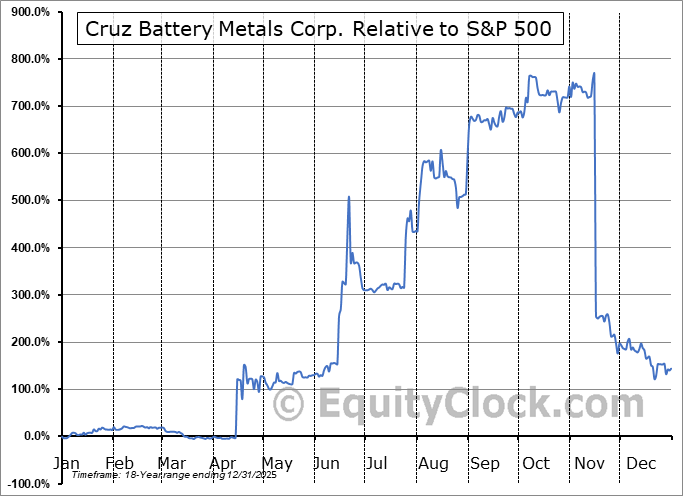 Analysis of the Cruz Battery Metals Corp. (CSE:CRUZ.CA) seasonal charts above shows that a Buy Date of May 5 and a Sell Date of September 3 has resulted in a geometric average return of 26.79% above the benchmark rate of the S&P 500 Total Return Index over the past 17 years. This seasonal timeframe has shown positive results compared to the benchmark in 12 of those periods. This is a good rate of success and the return strongly outperforms the relative buy-and-hold performance of the stock over the past 17 years by an average of 44.7% per year.