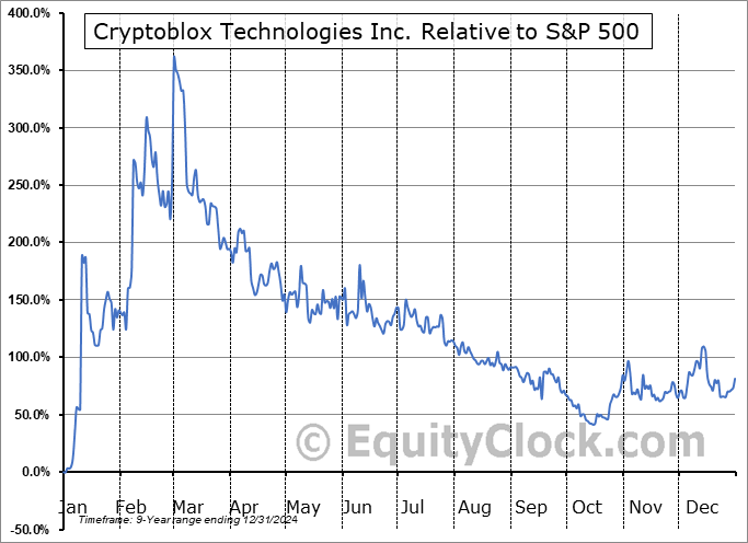 Analysis of the Cryptoblox Technologies Inc. (CSE:BLOX.CA) seasonal charts above shows that a Buy Date of December 26 and a Sell Date of April 6 has resulted in a geometric average return of 132.87% above the benchmark rate of the S&P 500 Total Return Index over the past 9 years. This seasonal timeframe has shown positive results compared to the benchmark in 8 of those periods. This is a very good rate of success and the return strongly outperforms the relative buy-and-hold performance of the stock over the past 9 years by an average of 167.4% per year.