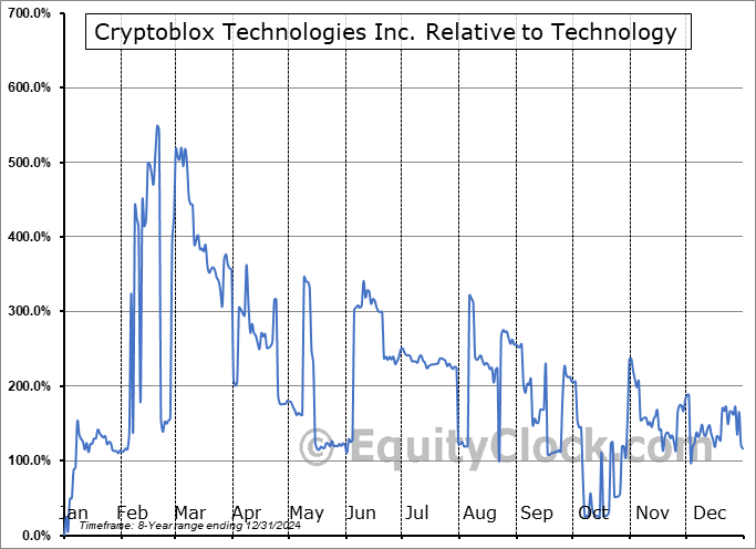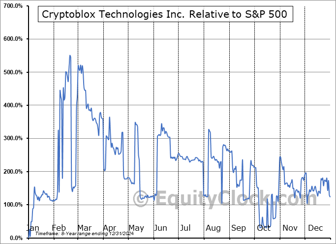 Analysis of the Cryptoblox Technologies Inc. (OTCMKT:CRYBF) seasonal charts above shows that a Buy Date of October 9 and a Sell Date of February 15 has resulted in a geometric average return of 206.37% above the benchmark rate of the S&P 500 Total Return Index over the past 8 years. This seasonal timeframe has shown positive results compared to the benchmark in 7 of those periods. This is a very good rate of success and the return strongly outperforms the relative buy-and-hold performance of the stock over the past 8 years by an average of 241.86% per year.