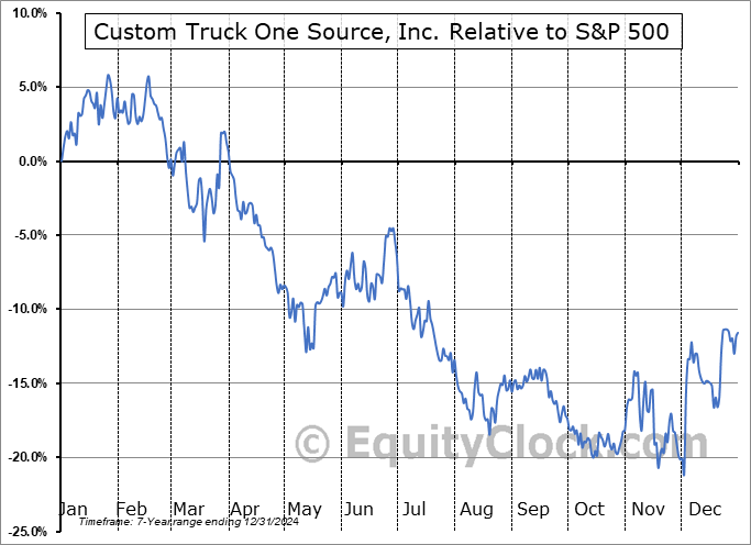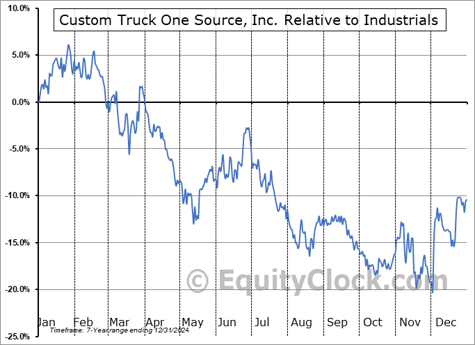 Analysis of the Custom Truck One Source, Inc. (NYSE:CTOS) seasonal charts above shows that a Buy Date of December 3 and a Sell Date of February 21 has resulted in a geometric average return of 9.86% above the benchmark rate of the S&P 500 Total Return Index over the past 7 years. This seasonal timeframe has shown positive results compared to the benchmark in 6 of those periods. This is a very good rate of success and the return strongly outperforms the relative buy-and-hold performance of the stock over the past 7 years by an average of 30.13% per year.