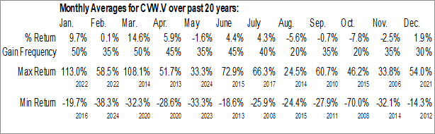 To download CVW.V seasonal chart data, please log in or Subscribe.