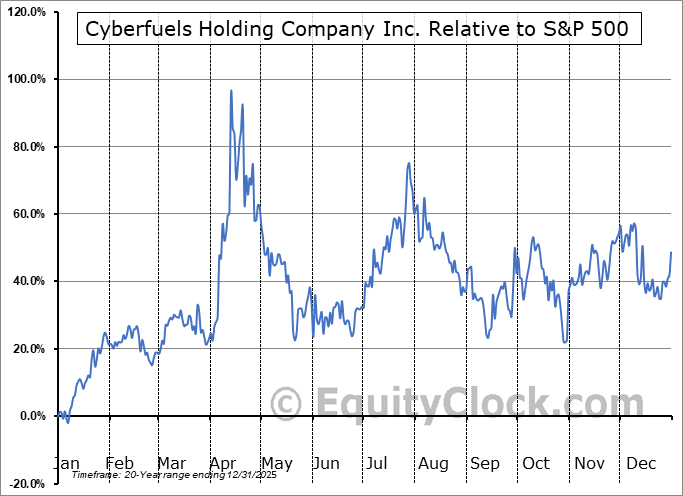 Analysis of the Cyberfuels Holding Company Inc. (OTCMKT:CBRF) seasonal charts above shows that a Buy Date of December 27 and a Sell Date of March 25 has resulted in a geometric average return of 29.85% above the benchmark rate of the S&P 500 Total Return Index over the past 20 years. This seasonal timeframe has shown positive results compared to the benchmark in 17 of those periods. This is a very good rate of success and the return strongly outperforms the relative buy-and-hold performance of the stock over the past 20 years by an average of 33.4% per year.