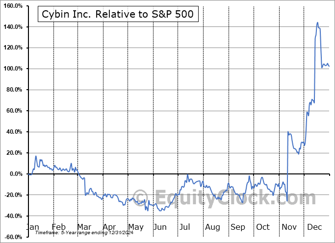 Analysis of the Cybin Inc. (AMEX:CYBN) seasonal charts above shows that a Buy Date of May 25 and a Sell Date of August 31 has resulted in a geometric average return of 39.43% above the benchmark rate of the S&P 500 Total Return Index over the past 5 years. This seasonal timeframe has shown positive results compared to the benchmark in 4 of those periods. This is a very good rate of success and the return strongly outperforms the relative buy-and-hold performance of the stock over the past 5 years by an average of 49% per year.