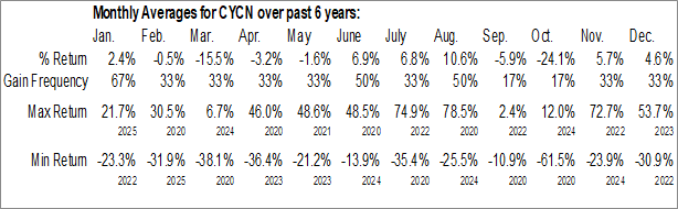 To download CYCN seasonal chart data, please log in or Subscribe.