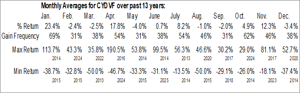 Cypress Development Corp. (OTCMKT:CYDVF) Seasonal Chart