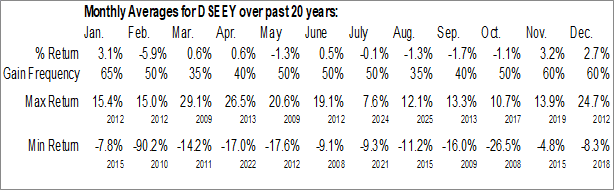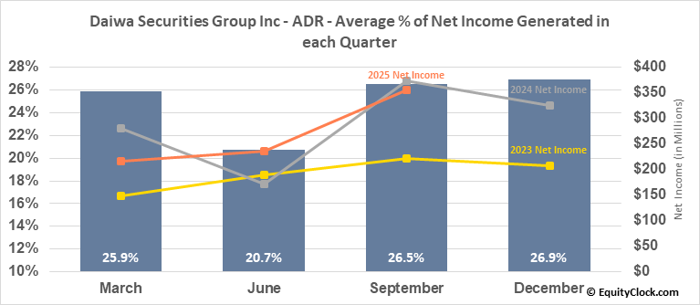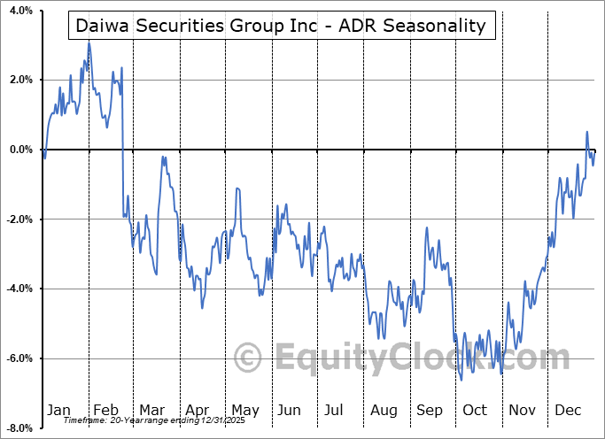 Daiwa Securities Group Inc – ADR (OTCMKT:DSEEY) Seasonal Chart