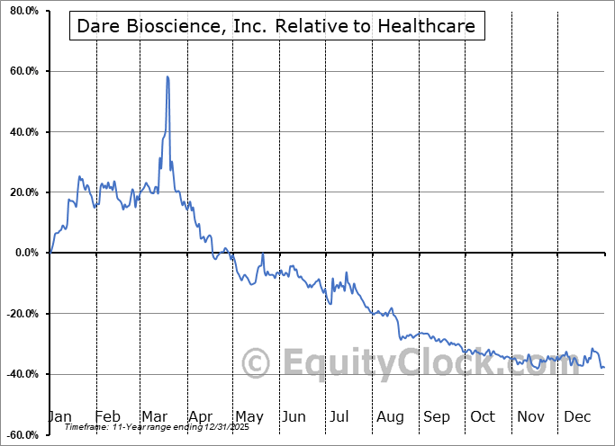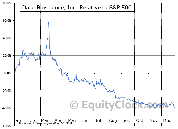 Analysis of the Dare Bioscience, Inc. (NASD:DARE) seasonal charts above shows that a Buy Date of November 7 and a Sell Date of March 19 has resulted in a geometric average return of 28.25% above the benchmark rate of the S&P 500 Total Return Index over the past 10 years. This seasonal timeframe has shown positive results compared to the benchmark in 8 of those periods. This is a very good rate of success and the return strongly outperforms the relative buy-and-hold performance of the stock over the past 10 years by an average of 77.21% per year.