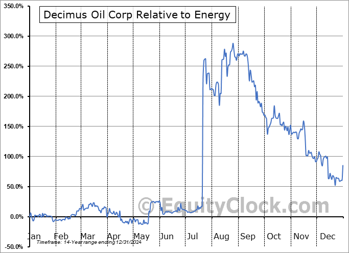 The seasonal timeframe correlates Poorly with the period of seasonal strength for the Energy sector, which runs from January 21 to May 9. The seasonal chart for the broad sector is available via the following link: Energy Sector Seasonal Chart.