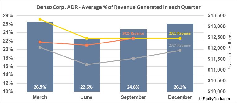 Denso Corp. ADR (OTCMKT:DNZOY) Seasonal Chart