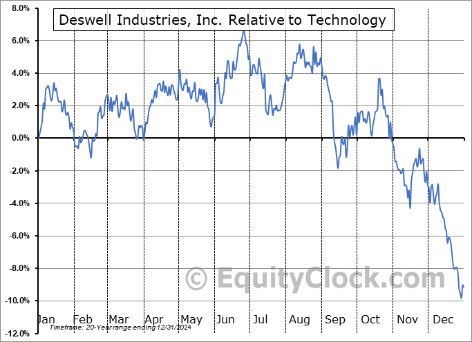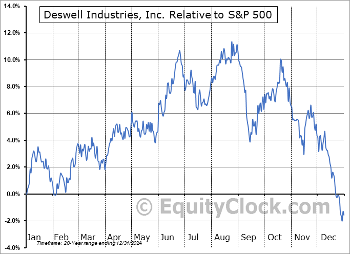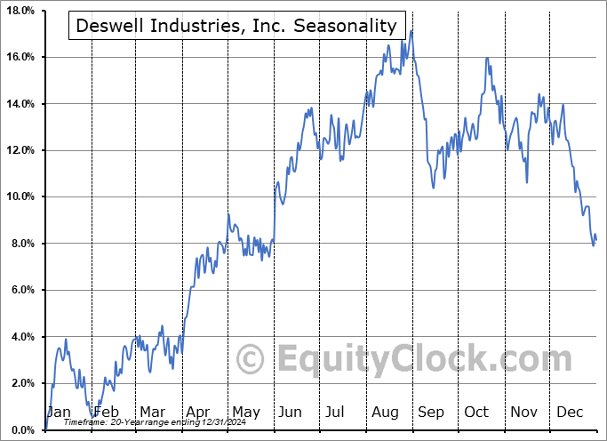Analysis of the Deswell Industries, Inc. (NASD:DSWL) seasonal charts above shows that a Buy Date of December 29 and a Sell Date of April 6 has resulted in a geometric average return of 2.73% above the benchmark rate of the S&P 500 Total Return Index over the past 20 years. This seasonal timeframe has shown positive results compared to the benchmark in 13 of those periods. This is a good rate of success and the return strongly outperforms the relative buy-and-hold performance of the stock over the past 20 years by an average of 14.9% per year.