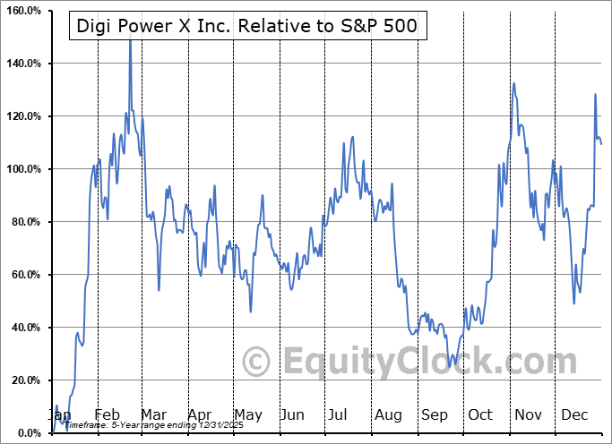 Analysis of the Digi Power X Inc. (TSXV:DGX.V) seasonal charts above shows that a Buy Date of September 21 and a Sell Date of February 9 has resulted in a geometric average return of 156.92% above the benchmark rate of the S&P 500 Total Return Index over the past 4 years. This seasonal timeframe has shown positive results compared to the benchmark in 4 of those periods. This is an excellent rate of success and the return strongly outperforms the relative buy-and-hold performance of the stock over the past 4 years by an average of 175.75% per year.