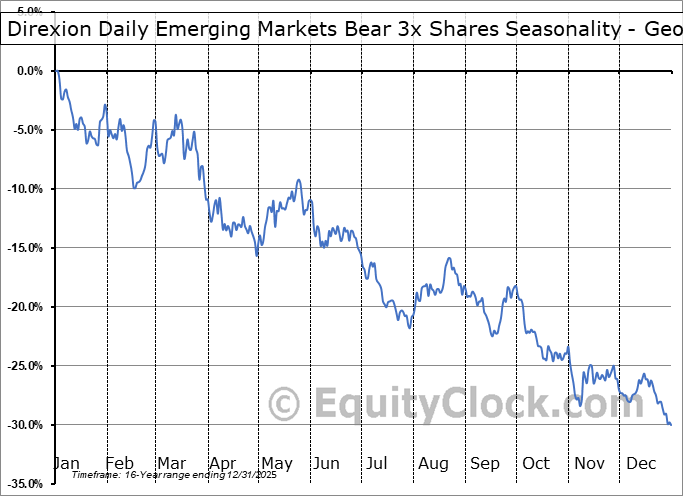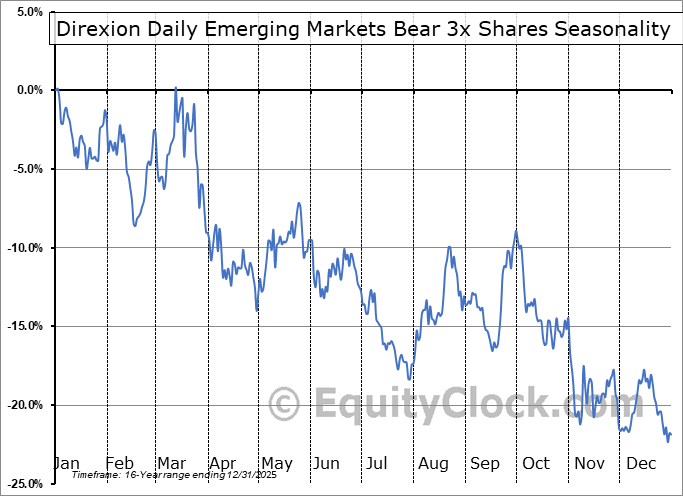 Direxion Daily Emerging Markets Bear 3x Shares (NYSE:EDZ) Seasonal Chart