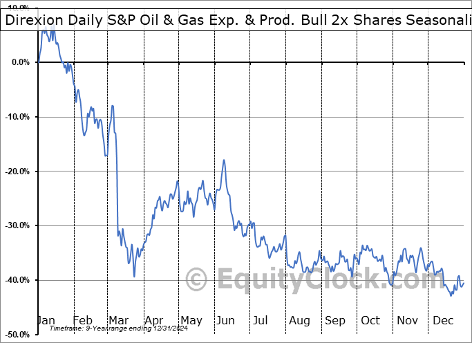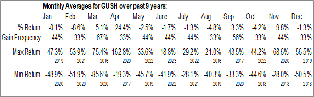 Direxion Daily S&P Oil & Gas Exp. & Prod. Bull 2x Shares (AMEX:GUSH) Seasonal Chart