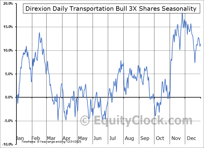 Direxion Daily Transportation Bull 3X Shares (AMEX:TPOR) Seasonal Chart