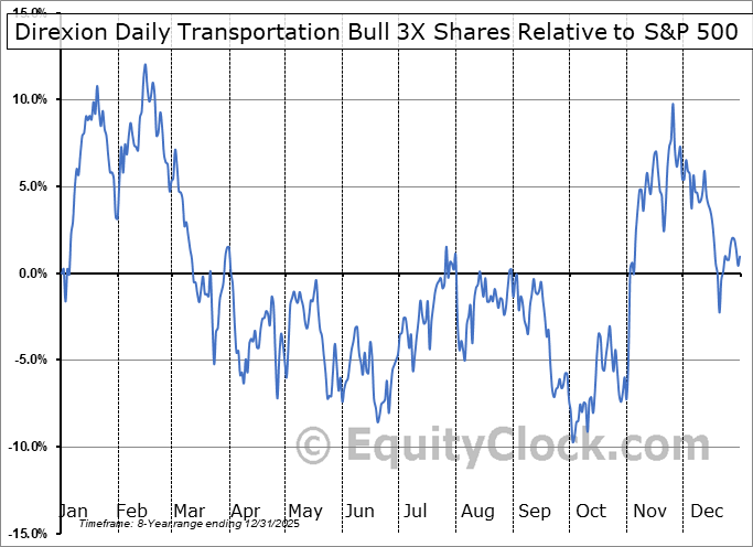 Analysis of the Direxion Daily Transportation Bull 3X Shares (AMEX:TPOR) seasonal charts above shows that a Buy Date of July 8 and a Sell Date of November 29 has resulted in a geometric average return of 16.87% above the benchmark rate of the S&P 500 Total Return Index over the past 7 years. This seasonal timeframe has shown positive results compared to the benchmark in 6 of those periods. This is a very good rate of success and the return strongly outperforms the relative buy-and-hold performance of the stock over the past 7 years by an average of 30.72% per year.