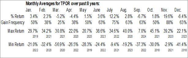 A word of caution: Only 7 years of data is available for shares of TPOR, perhaps insufficient to create a seasonal profile that accurately gauges the seasonal tendencies influencing the investment. Ideally, while 20 years is preferred, at least 10 years of data is required to perform a seasonal analysis that is considered to be reliable for future seasonal periods.