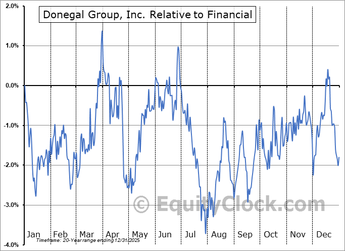 The seasonal timeframe correlates Poorly with the period of seasonal strength for the Financial sector, which runs from November 22 to April 13. The seasonal chart for the broad sector is available via the following link: Financial Sector Seasonal Chart.