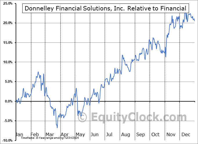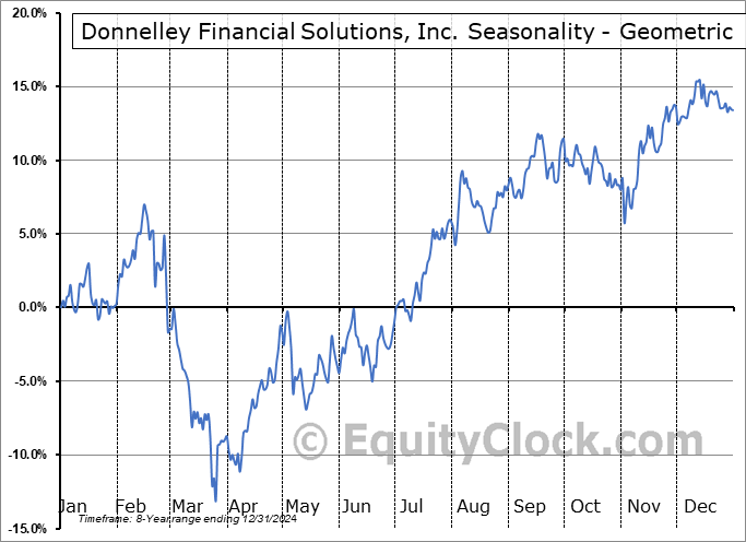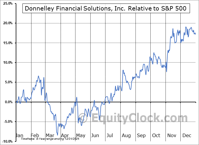 Analysis of the Donnelley Financial Solutions, Inc. (NYSE:DFIN) seasonal charts above shows that a Buy Date of April 7 and a Sell Date of August 25 has resulted in a geometric average return of 12.48% above the benchmark rate of the S&P 500 Total Return Index over the past 8 years. This seasonal timeframe has shown positive results compared to the benchmark in 7 of those periods. This is a very good rate of success and the return strongly outperforms the relative buy-and-hold performance of the stock over the past 8 years by an average of 13.79% per year.