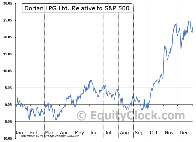Analysis of the Dorian LPG Ltd. (NYSE:LPG) seasonal charts above shows that a Buy Date of August 21 and a Sell Date of November 26 has resulted in a geometric average return of 13.16% above the benchmark rate of the S&P 500 Total Return Index over the past 10 years. This seasonal timeframe has shown positive results compared to the benchmark in 9 of those periods. This is an excellent rate of success and the return strongly outperforms the relative buy-and-hold performance of the stock over the past 10 years by an average of 12.56% per year.