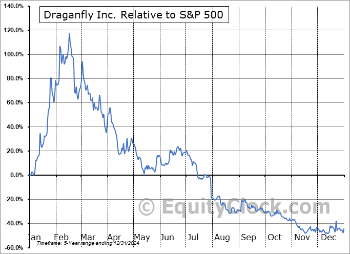 Analysis of the Draganfly Inc. (NASD:DPRO) seasonal charts above shows that a Buy Date of December 29 and a Sell Date of April 3 has resulted in a geometric average return of 55.5% above the benchmark rate of the S&P 500 Total Return Index over the past 4 years. This seasonal timeframe has shown positive results compared to the benchmark in 4 of those periods. This is an excellent rate of success and the return strongly outperforms the relative buy-and-hold performance of the stock over the past 4 years by an average of 112.53% per year.