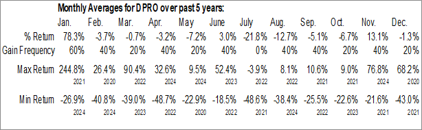 A word of caution: Only 4 years of data is available for shares of DPRO, perhaps insufficient to create a seasonal profile that accurately gauges the seasonal tendencies influencing the investment. Ideally, while 20 years is preferred, at least 10 years of data is required to perform a seasonal analysis that is considered to be reliable for future seasonal periods.