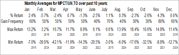 To download MPCT-UN.TO seasonal chart data, please log in or Subscribe.