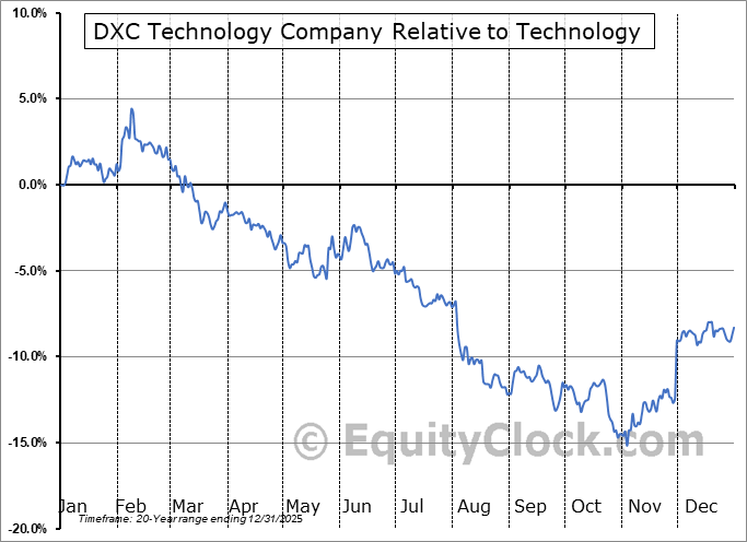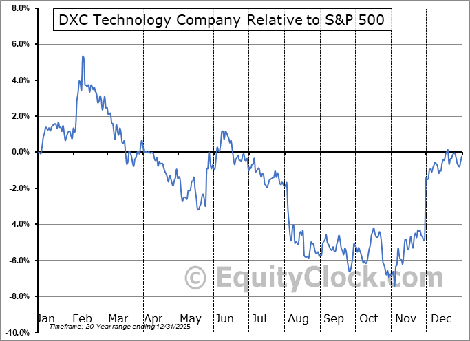 Analysis of the DXC Technology Company (NYSE:DXC) seasonal charts above shows that a Buy Date of September 23 and a Sell Date of January 4 has resulted in a geometric average return of 5.27% above the benchmark rate of the S&P 500 Total Return Index over the past 20 years. This seasonal timeframe has shown positive results compared to the benchmark in 16 of those periods. This is a very good rate of success and the return strongly outperforms the relative buy-and-hold performance of the stock over the past 20 years by an average of 11.67% per year.