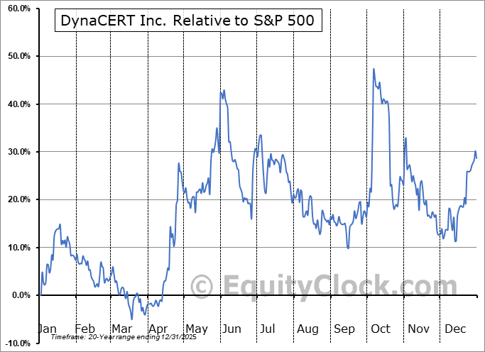 Analysis of the DynaCERT Inc. (OTCMKT:DYFSF) seasonal charts above shows that a Buy Date of December 18 and a Sell Date of April 24 has resulted in a geometric average return of 14.96% above the benchmark rate of the S&P 500 Total Return Index over the past 20 years. This seasonal timeframe has shown positive results compared to the benchmark in 14 of those periods. This is a good rate of success and the return strongly outperforms the relative buy-and-hold performance of the stock over the past 20 years by an average of 26.06% per year.