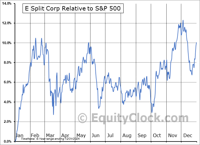 Analysis of the E Split Corp (TSE:ENS.TO) seasonal charts above shows that a Buy Date of December 18 and a Sell Date of March 7 has resulted in a geometric average return of 8.61% above the benchmark rate of the S&P 500 Total Return Index over the past 6 years. This seasonal timeframe has shown positive results compared to the benchmark in 5 of those periods. This is a very good rate of success and the return strongly outperforms the relative buy-and-hold performance of the stock over the past 6 years by an average of 9.76% per year.
