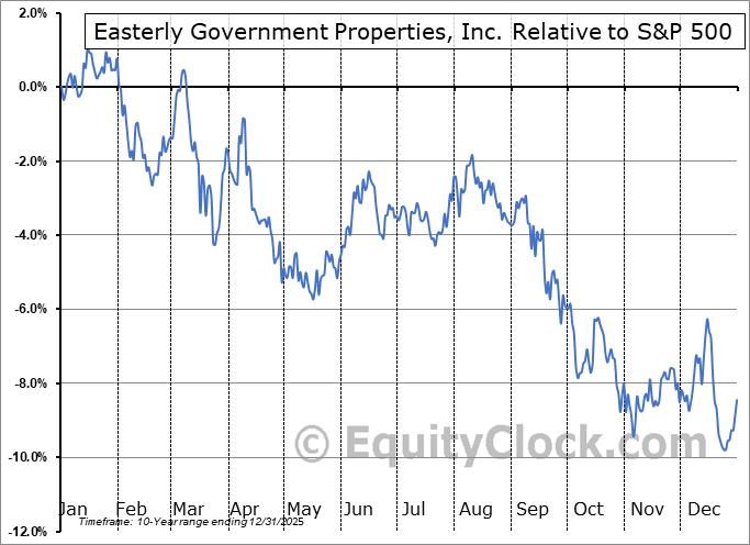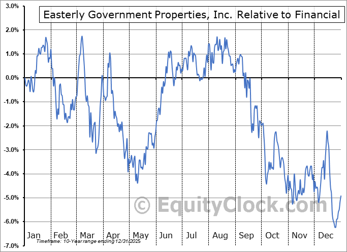 Analysis of the Easterly Government Properties, Inc. (NYSE:DEA) seasonal charts above shows that a Buy Date of February 19 and a Sell Date of June 14 has resulted in a geometric average return of 0.02% above the benchmark rate of the S&P 500 Total Return Index over the past 10 years. This seasonal timeframe has shown positive results compared to the benchmark in 7 of those periods. This is a good rate of success and the return strongly outperforms the relative buy-and-hold performance of the stock over the past 10 years by an average of 13.56% per year.