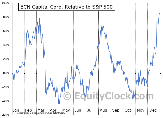 Analysis of the ECN Capital Corp. (TSE:ECN.TO) seasonal charts above shows that a Buy Date of November 15 and a Sell Date of March 10 has resulted in a geometric average return of 15.3% above the benchmark rate of the S&P 500 Total Return Index over the past 9 years. This seasonal timeframe has shown positive results compared to the benchmark in 8 of those periods. This is a very good rate of success and the return strongly outperforms the relative buy-and-hold performance of the stock over the past 9 years by an average of 17.86% per year.
