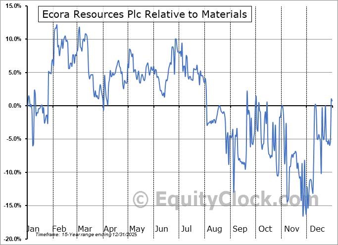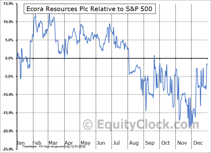 Analysis of the Ecora Resources Plc (TSE:ECOR.TO) seasonal charts above shows that a Buy Date of November 30 and a Sell Date of March 7 has resulted in a geometric average return of 31.81% above the benchmark rate of the S&P 500 Total Return Index over the past 15 years. This seasonal timeframe has shown positive results compared to the benchmark in 11 of those periods. This is a good rate of success and the return strongly outperforms the relative buy-and-hold performance of the stock over the past 15 years by an average of 43.11% per year.