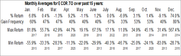 To download ECOR.TO seasonal chart data, please log in or Subscribe.