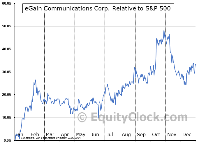 Analysis of the eGain Communications Corp. (NASD:EGAN) seasonal charts above shows that a Buy Date of September 24 and a Sell Date of February 6 has resulted in a geometric average return of 10.68% above the benchmark rate of the S&P 500 Total Return Index over the past 20 years. This seasonal timeframe has shown positive results compared to the benchmark in 15 of those periods. This is a good rate of success and the return strongly outperforms the relative buy-and-hold performance of the stock over the past 20 years by an average of 11.2% per year.