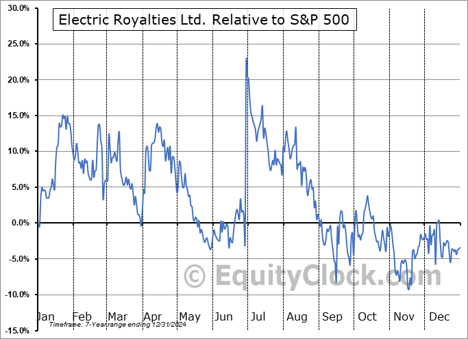 Analysis of the Electric Royalties Ltd. (TSXV:ELEC.V) seasonal charts above shows that a Buy Date of November 17 and a Sell Date of April 12 has resulted in a geometric average return of 21.11% above the benchmark rate of the S&P 500 Total Return Index over the past 7 years. This seasonal timeframe has shown positive results compared to the benchmark in 6 of those periods. This is a very good rate of success and the return strongly outperforms the relative buy-and-hold performance of the stock over the past 7 years by an average of 33.01% per year.