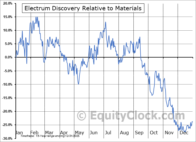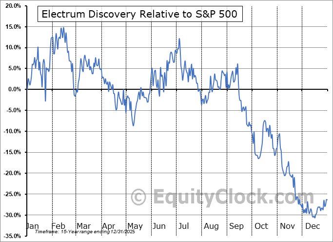 Analysis of the Electrum Discovery (TSXV:ELY.V) seasonal charts above shows that a Buy Date of December 14 and a Sell Date of March 25 has resulted in a geometric average return of 8.77% above the benchmark rate of the S&P 500 Total Return Index over the past 15 years. This seasonal timeframe has shown positive results compared to the benchmark in 13 of those periods. This is a very good rate of success and the return strongly outperforms the relative buy-and-hold performance of the stock over the past 15 years by an average of 47.16% per year.