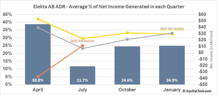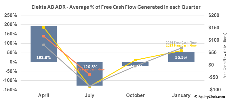 Elekta AB ADR (OTCMKT:EKTAY) Seasonal Chart