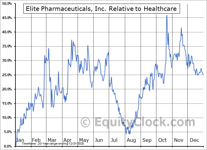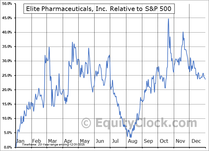 Analysis of the Elite Pharmaceuticals, Inc. (OTCMKT:ELTP) seasonal charts above shows that a Buy Date of December 4 and a Sell Date of February 27 has resulted in a geometric average return of 12.81% above the benchmark rate of the S&P 500 Total Return Index over the past 20 years. This seasonal timeframe has shown positive results compared to the benchmark in 14 of those periods. This is a good rate of success and the return strongly outperforms the relative buy-and-hold performance of the stock over the past 20 years by an average of 30.62% per year.