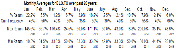 To download ELO.TO seasonal chart data, please log in or Subscribe.