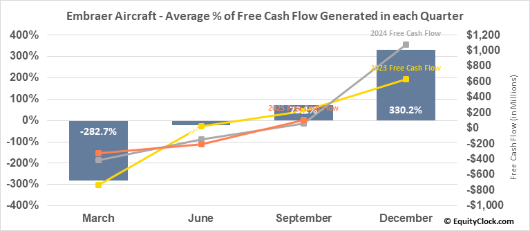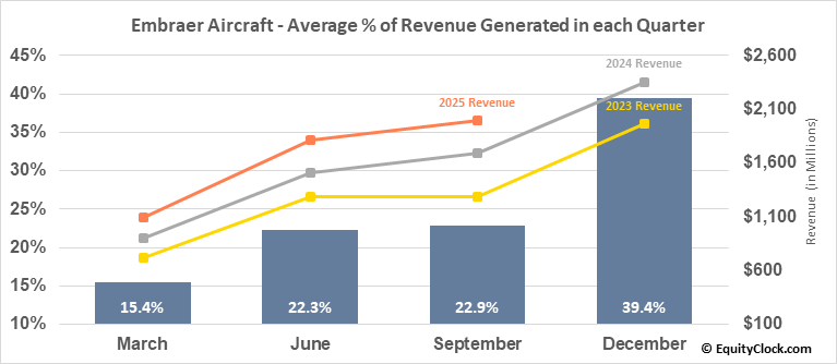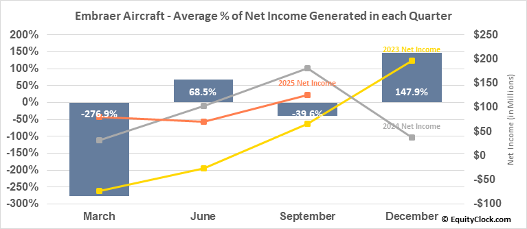 Embraer Aircraft (NYSE:EMBJ) Seasonal Chart