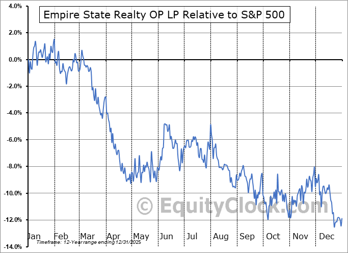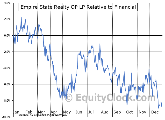 Analysis of the Empire State Realty OP LP (AMEX:ESBA) seasonal charts above shows that a Buy Date of October 29 and a Sell Date of January 19 has resulted in a geometric average return of 3.25% above the benchmark rate of the S&P 500 Total Return Index over the past 11 years. This seasonal timeframe has shown positive results compared to the benchmark in 7 of those periods. This is a fair rate of success and the return strongly outperforms the relative buy-and-hold performance of the stock over the past 11 years by an average of 15.64% per year.