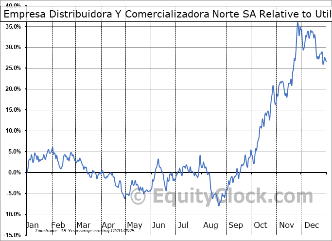 Analysis of the Empresa Distribuidora Y Comercializadora Norte SA (NYSE:EDN) seasonal charts above shows that a Buy Date of August 31 and a Sell Date of January 10 has resulted in a geometric average return of 15.26% above the benchmark rate of the S&P 500 Total Return Index over the past 17 years. This seasonal timeframe has shown positive results compared to the benchmark in 13 of those periods. This is a good rate of success and the return strongly outperforms the relative buy-and-hold performance of the stock over the past 17 years by an average of 21.42% per year.