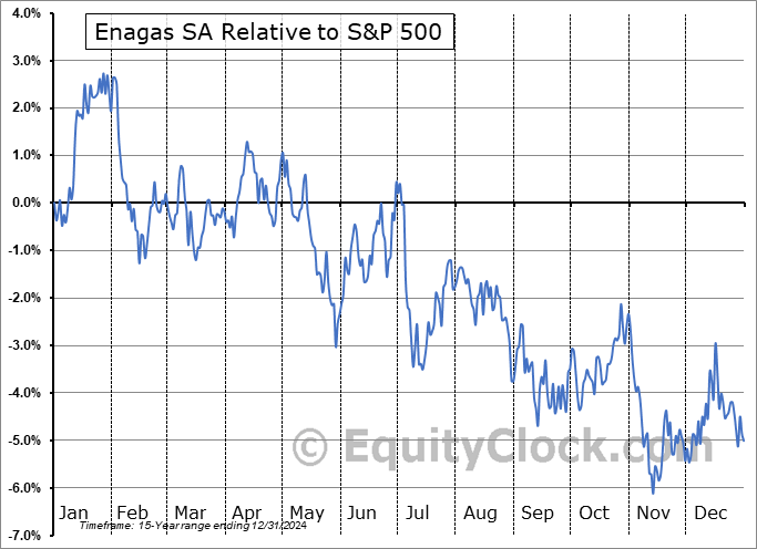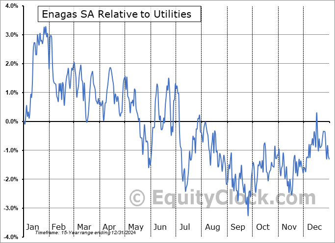 Analysis of the Enagas SA (OTCMKT:ENGGY) seasonal charts above shows that a Buy Date of November 11 and a Sell Date of January 31 has resulted in a geometric average return of 1.37% above the benchmark rate of the S&P 500 Total Return Index over the past 15 years. This seasonal timeframe has shown positive results compared to the benchmark in 11 of those periods. This is a good rate of success and the return strongly outperforms the relative buy-and-hold performance of the stock over the past 15 years by an average of 10.41% per year.