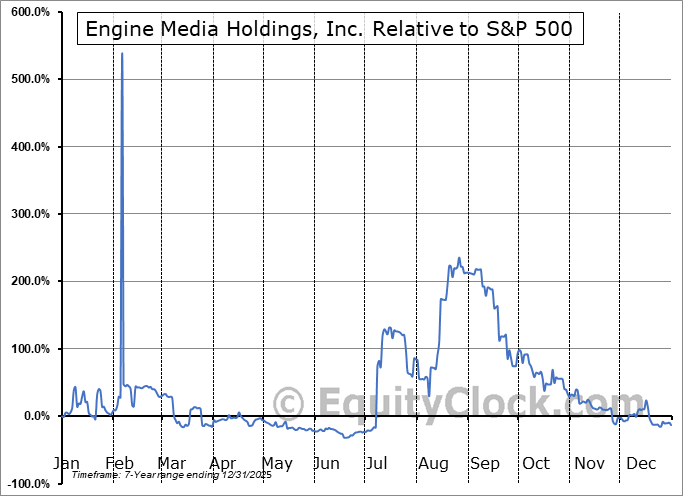 Analysis of the Engine Media Holdings, Inc. (NASD:GAME) seasonal charts above shows that a Buy Date of November 21 and a Sell Date of February 18 has resulted in a geometric average return of 29.24% above the benchmark rate of the S&P 500 Total Return Index over the past 6 years. This seasonal timeframe has shown positive results compared to the benchmark in 6 of those periods. This is an excellent rate of success and the return strongly outperforms the relative buy-and-hold performance of the stock over the past 6 years by an average of 78.48% per year.