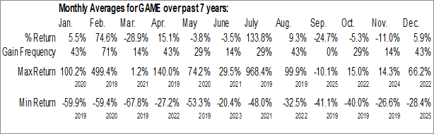 A word of caution: Only 6 years of data is available for shares of GAME, perhaps insufficient to create a seasonal profile that accurately gauges the seasonal tendencies influencing the investment. Ideally, while 20 years is preferred, at least 10 years of data is required to perform a seasonal analysis that is considered to be reliable for future seasonal periods.