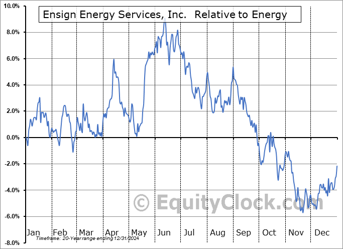 Analysis of the Ensign Energy Services, Inc. (TSE:ESI.TO) seasonal charts above shows that a Buy Date of December 9 and a Sell Date of March 4 has resulted in a geometric average return of 4.6% above the benchmark rate of the S&P 500 Total Return Index over the past 20 years. This seasonal timeframe has shown positive results compared to the benchmark in 14 of those periods. This is a good rate of success and the return strongly outperforms the relative buy-and-hold performance of the stock over the past 20 years by an average of 16.71% per year.