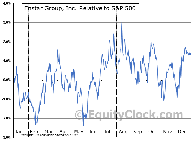 Analysis of the Enstar Group, Inc. (NASD:ESGR) seasonal charts above shows that a Buy Date of May 31 and a Sell Date of October 15 has resulted in a geometric average return of 3.14% above the benchmark rate of the S&P 500 Total Return Index over the past 20 years. This seasonal timeframe has shown positive results compared to the benchmark in 15 of those periods. This is a good rate of success and the return strongly outperforms the relative buy-and-hold performance of the stock over the past 20 years by an average of 4.42% per year.